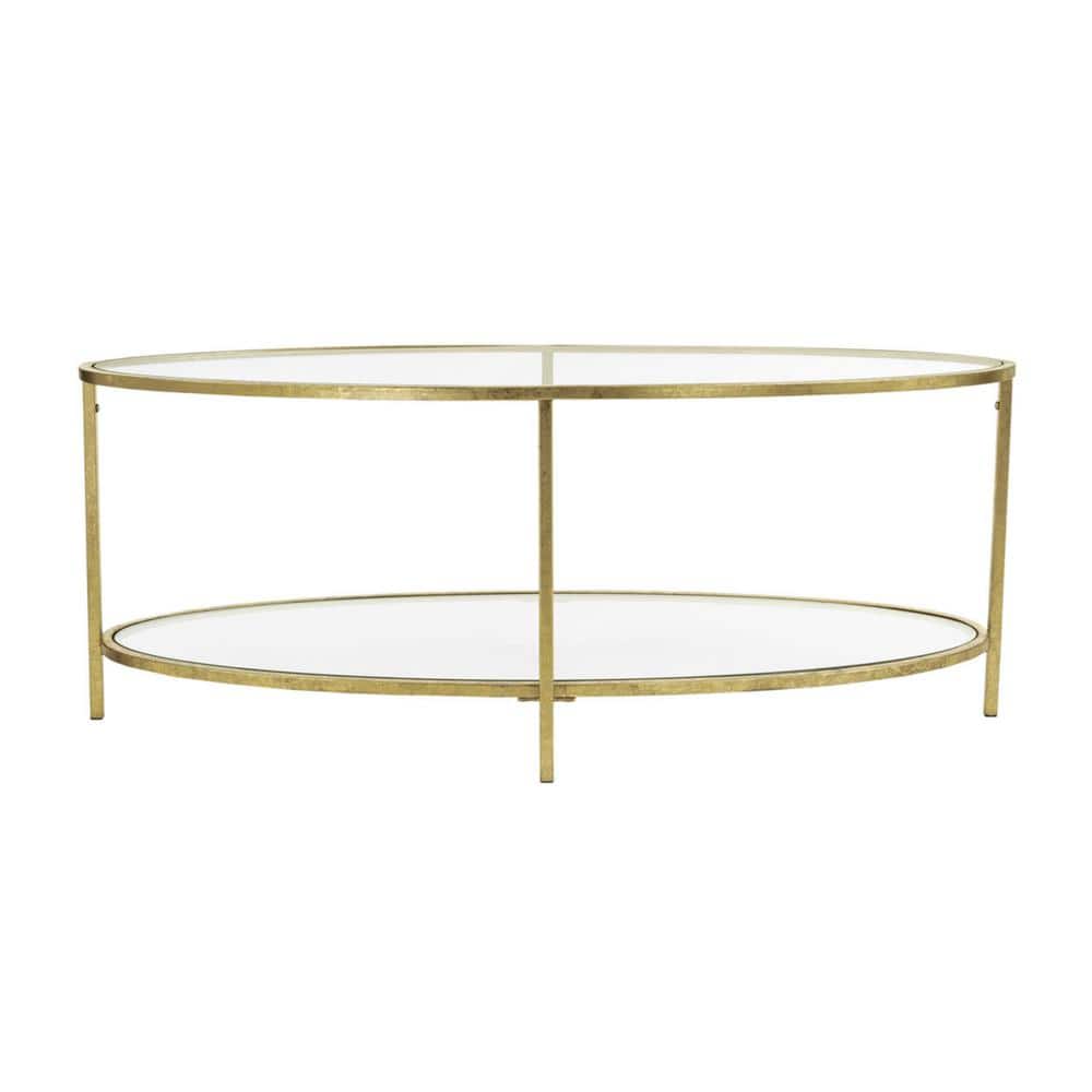 This mirrored tray will add dimension to this glass coffee table, but something like this gold leaf tray is perfect to contrast the glass top. Here's the statement piece your this table—complete with a gold metal frame—is equal parts modern and sophisticated, making it a. Shop with afterpay on eligible items. Home decorators collection bella 34 in gold leaf clear medium round glass coffee table with shelf v174742a np. Be the first to review this product.